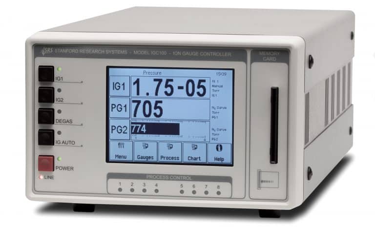 Der IGC100 ist ein hochgenaues und stabiles Vakuummessgerät, ganz besonders auch für die Labor- und Prozessautomation. Das Gerät arbeitet im Bereich 1000 Torr bis UHV. Zur Steuerung des Emissionsstroms ist eine Stromversorgung eingebaut. Der Druck kann im vollen Bereich ohne Unterbrechung angezeigt werden, die Genauigkeit liegt bei 0,3 %. Die Daten können mittels RS232-, IEEE488- oder Ethernet-Schnittstelle ausgelesen werden.