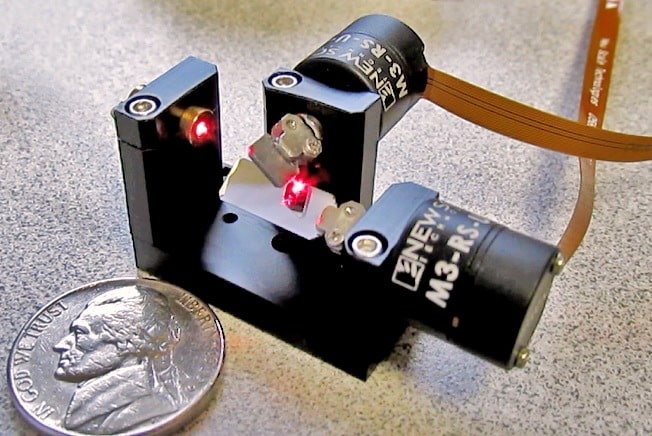 Beim Strahllenkmodul M3-RS-U-xM handelt es sich um das Rotationsmodul M3-R mit einem oder zwei eingebauten Spiegeln zur schnellen und einfachen Integration in Miniatur-OEM-Systeme und optische Bänke. Die Antriebselektronik ist im Gehäuse mit eingebaut. Es wird kein zusätzliches externes Antriebsbord benötigt! Das Modul kann über SPI- oder I2C-Schnittstelle mit einer bereits existierenden Elektronik verbunden werden. Der Strahldurchmesser liegt für den Standardspiegel bei max. 2 mm. Kundenspezifische Spiegel sind lieferbar. Herstellervideo: www.youtube.com/watch?v=xw8wyKWAkMo
