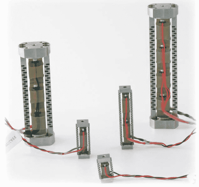 Der parallel vorgespannte Stellantrieb besteht aus einem vorgespannten Stapel piezoelektrischer Niederspannungskeramiken (MLA). Die Vorbelastung (oder Vorspannung) erzielt man anhand eines externen Federrahmens aus rostfreiem Stahl, der die MLA vor Zugkraft schützt und mechanische Schnittstellen für den Benutzer zur Erleichterung des Einbaus bereitstellt. Dieser Vorspannrahmen legt eine optimale Vorbelastungskraft an die MLAs an, um bei dynamischen Anwendungen längere Lebensdauer und bessere Performance als bei anderen, herkömmlichen Stellantrieben sicherzustellen.