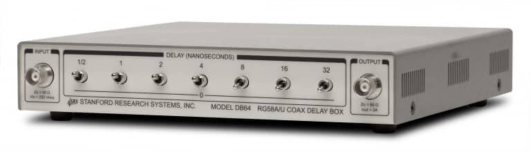 Die DB64 Delay-Box erlaubt es Signalverzögerungen per Schalter von 0 bis 63,5 ns in 0,5 ns-Schritten einzustellen. Zu den Anwendungen gehören das Timing-Einstellungen von gekoppelten Fotomultiplizierern, Aufbau von Zeit-zu-Amplitudenwandlern, Anpassung der Phase von Signalen und viele weitere, die einstellbare analoge Verzögerungen bei hoher Bandbreite benötigen.