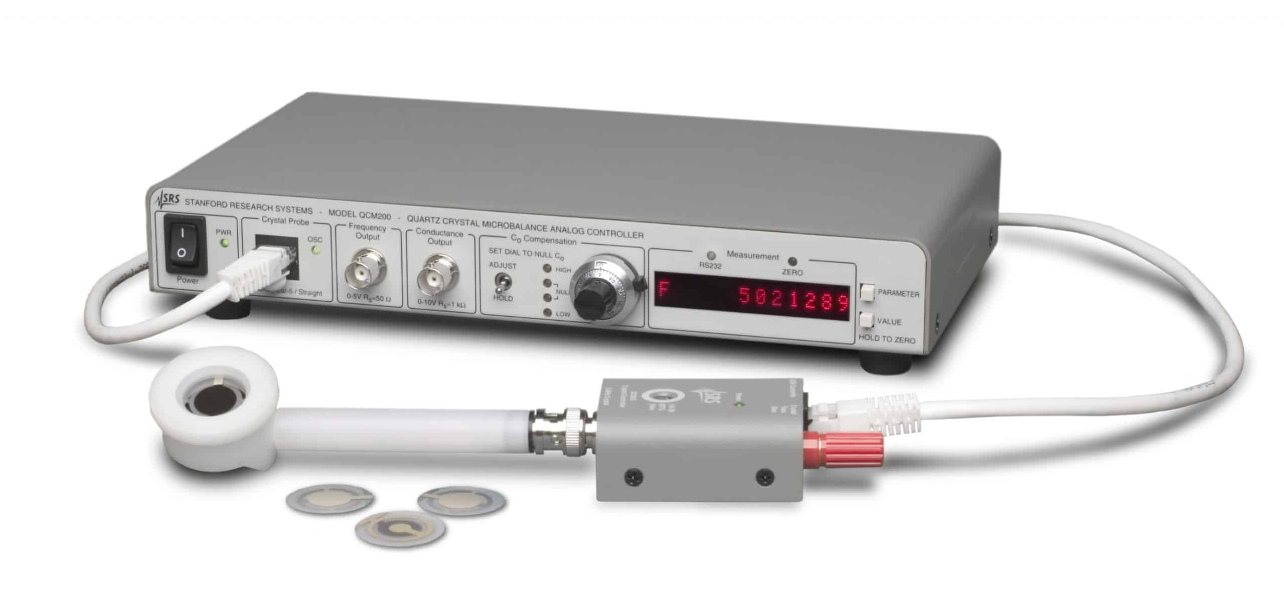 Das QCM wird in der Massen- und Viskositäts-bestimmung eingesetzt. Anwendungen sind: Schichtdickenmonitor für Dünnfilme, Viskositäts-messungen, Gasdetektion, Umweltüberwachung, Biosensing. Das QCM ist eine hochgenaue Mikrowaage für die Betriebsarten Frequenz- und Widerstands-messung. Es wurde speziell für hoch belastbare Kristalle bis zu 5 kOhm entwickelt. Das System enthält Analogregler, Oszillatorelektronik, Kristallhalter und Quarzkristalle.