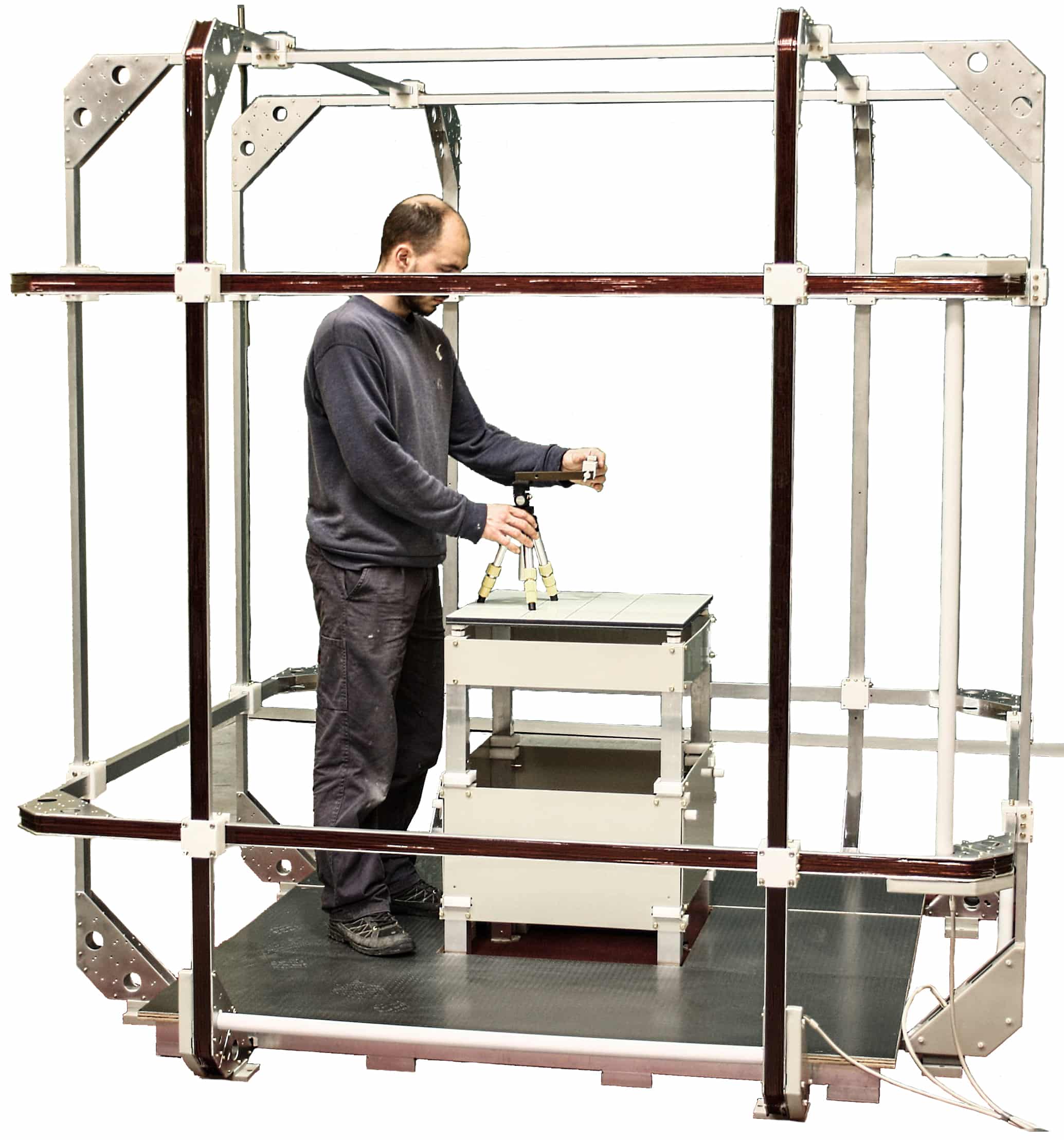 Zur Ferronato® BHC-Serie von Serviciencia gehören mehrere Magnetfeldmesskammern mit Helmholtzspulensystemen in verschiedenen Größen und mit variablen elektrischen Eigenschaften zur Erzeugung von homogenen Magnetfeldern für Testumgebungen, Konformitätsüberprüfungen und Experimente. Standard-Modelle verfügen über einen Nenndurchmesser von 2 m bis 4 m. Dabei kann die Anzahl der Achsen, auf denen das erzeugte Magnetfeld homogen sein soll, frei gewählt werden. Mit 1D-, 2D- und 3D-Modellen ist für jede Anwendung das passende System erhältlich. Auf Anfrage können außerdem alle Modelle auf Ihre jeweilige Anwendung maßgeschneidert werden.