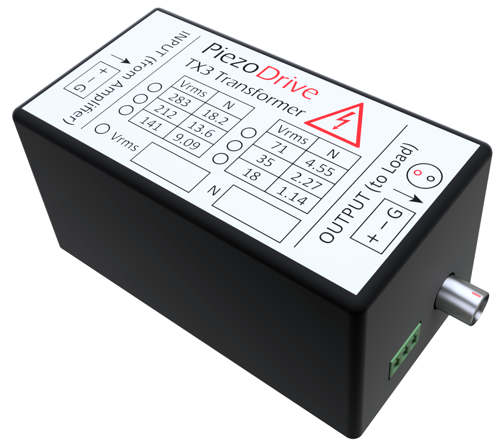 Der Ultraschallverstärker ist verfügbar mit den Standardausgangsspannungsbereichen von 17 Vrms bis 282 Vrms und Strombereichen von 0,7 Arms bis 11 Arms. Diese Bereiche sind optimiert für Lastimpedanzen von 1,5 bis 400 Ω bei Resonanz. Für Forschungs- und Entwicklungsanwendungen, ist die rekonfigurierbare Version PDUS210-FLEX erhältlich. Die FLEX-Version verwendet externe Transformatoren zur Anpassung des Ausgangs, um den Betrieb bei allen verfügbaren Ausgangsspannungen zu ermöglichen.