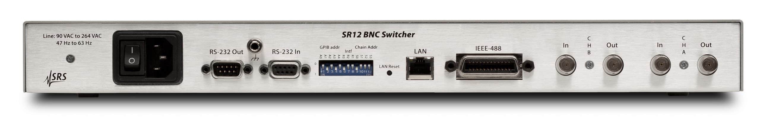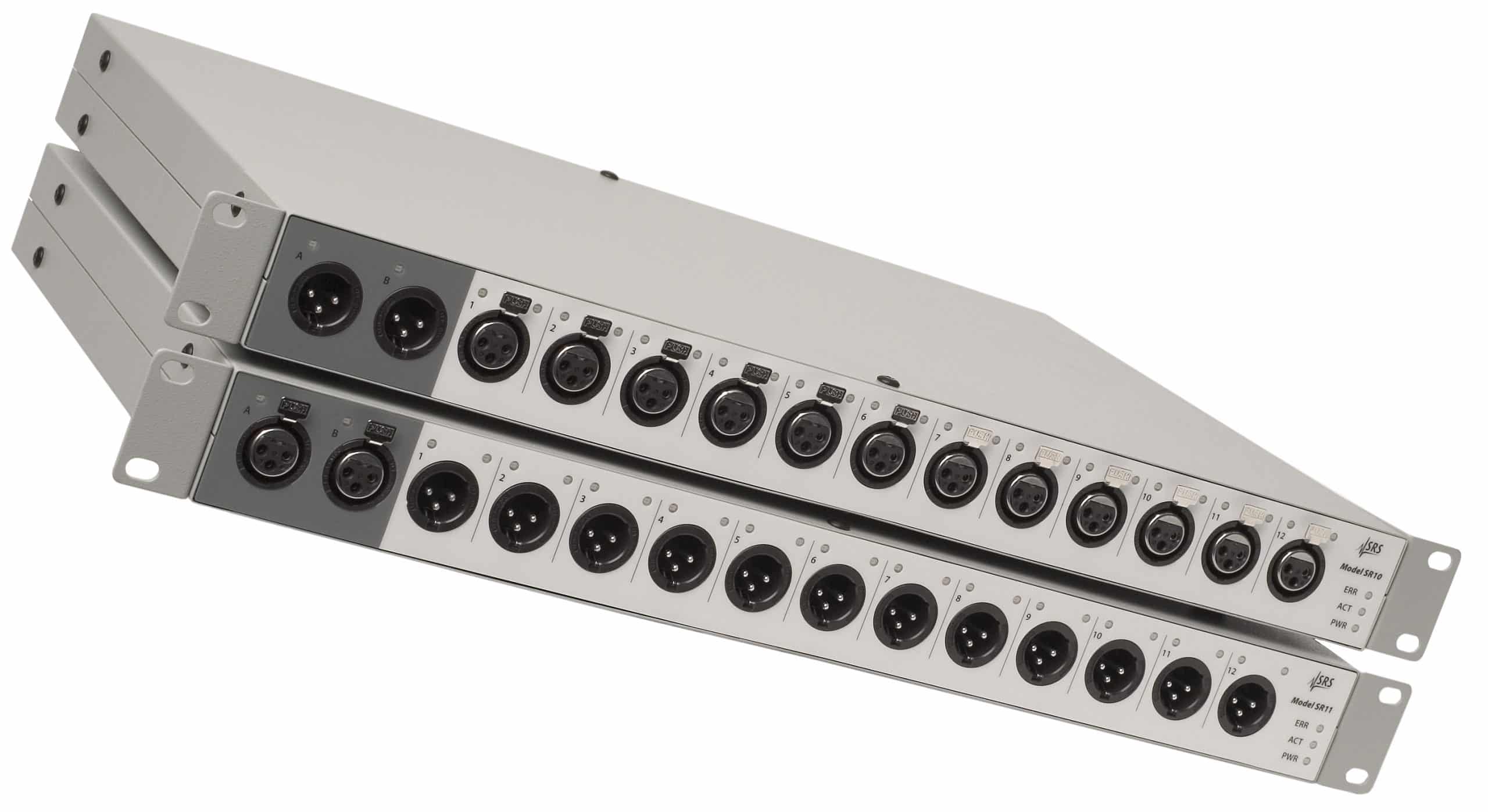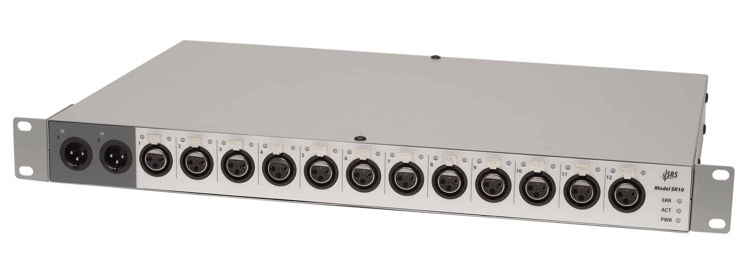 Die Schaltmatrizen der SR10-Serie erlauben es pro Gerät entweder 12 Eingänge auf einen Abnehmer oder eine Quelle auf 12 Abnehmer zu schalten. Die max. Amplitude beträgt 250 Veff.