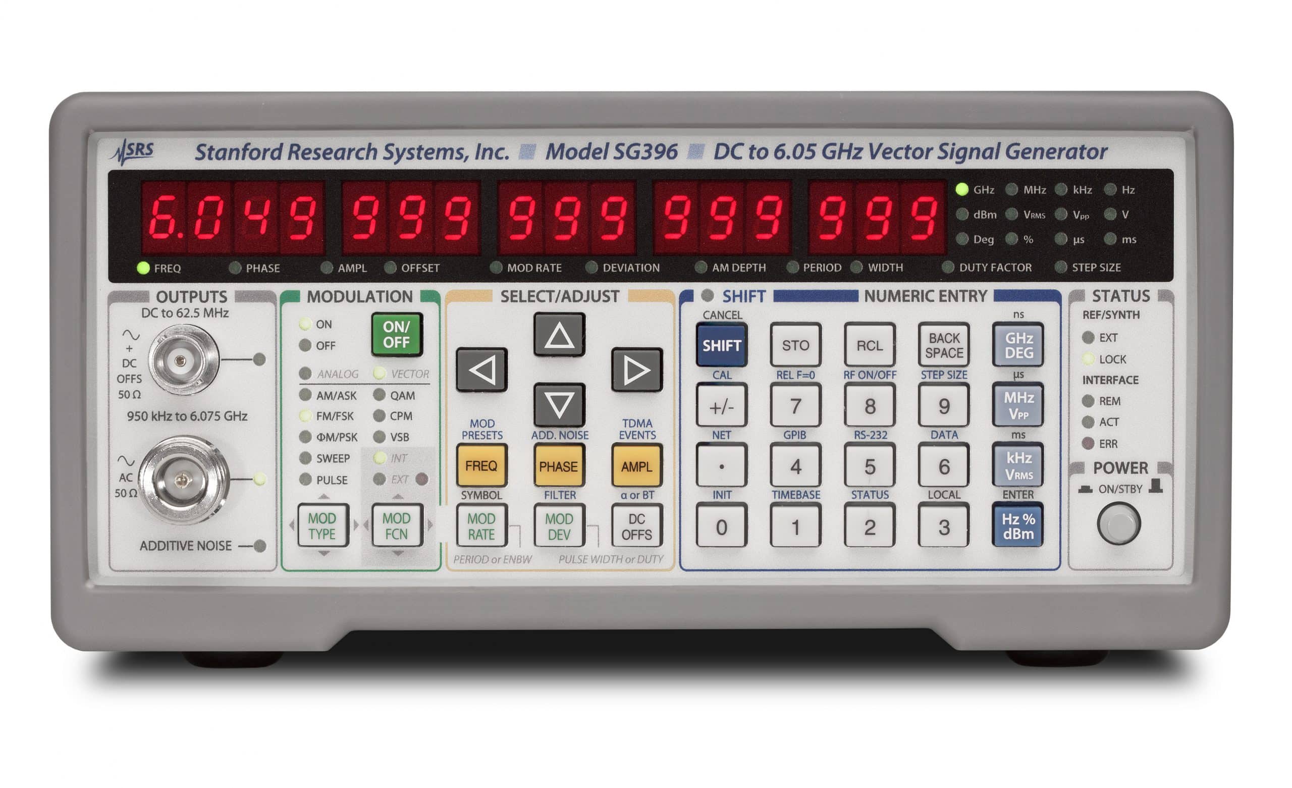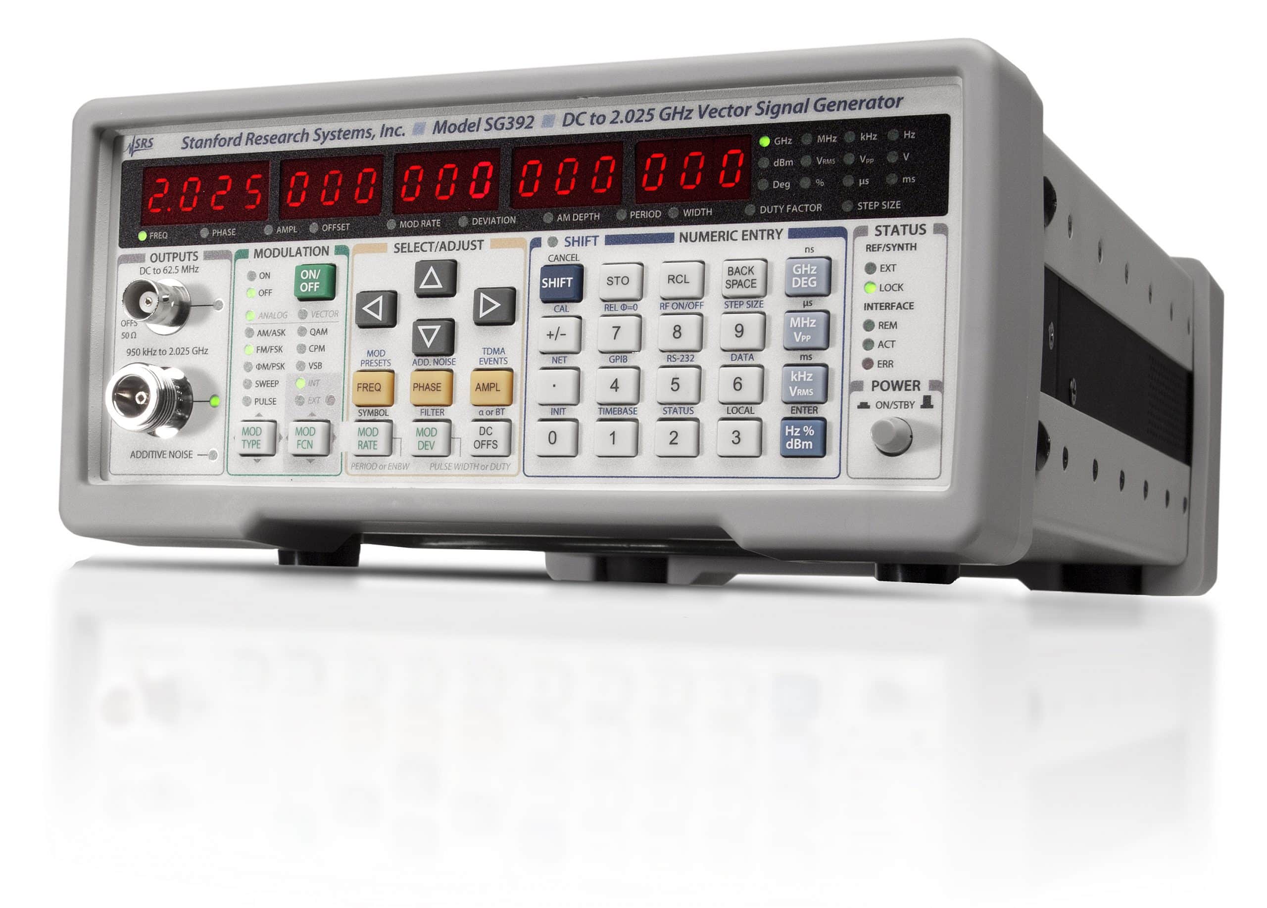 Die Synthesizersignalgeneratorenfamilie SG39x besteht aus 3 HF-Signalgeneratoren mit herausragenden Eigenschaften. Die Geräte ermöglichen sowohl analoge, als auch Vektor-Modulation. Als Modulationsquellen dienen Rechteck-, Sinus-, Sägezahn-, Puls- und Rauschsignale. Testpattern für GSM, CDMA und Bluetooth sind bereits implementiert. Die standardmäßige Zeitbasis hat eine Genauigkeit von 0,002 ppm. Das Gerät verfügt über Ethernet-, GPIB- und RS-232-Schnittstellen.