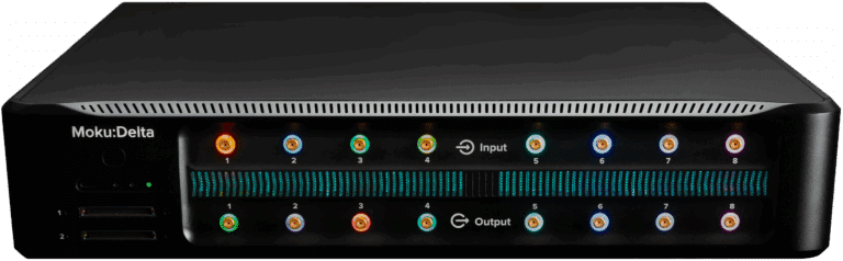 Moku:Delta ist das fortschrittlichste System der Moku:Familie von softwaredefinierten Messgeräten. Das System nutzt die Leistung des FPGAs in Kombination mit einem analogen Hochleistungs-Front-End und ist dadurch in der Lage, mehrere Messfunktionalitäten auf einer einzigen Hardwareplattform zu hosten, ohne auf einzelne Spezifikationen zu verzichten oder Präzision einzubüßen. Diese Herangehensweise ermöglicht eine einfache Skalierung und Erweiterung der Möglichkeiten in Forschung und Entwicklung. Mit Moku:Delta haben Forschende und Ingenieure das richtige Werkzeug für Ihre stetig wahcsendes Aufgabenspektrum.