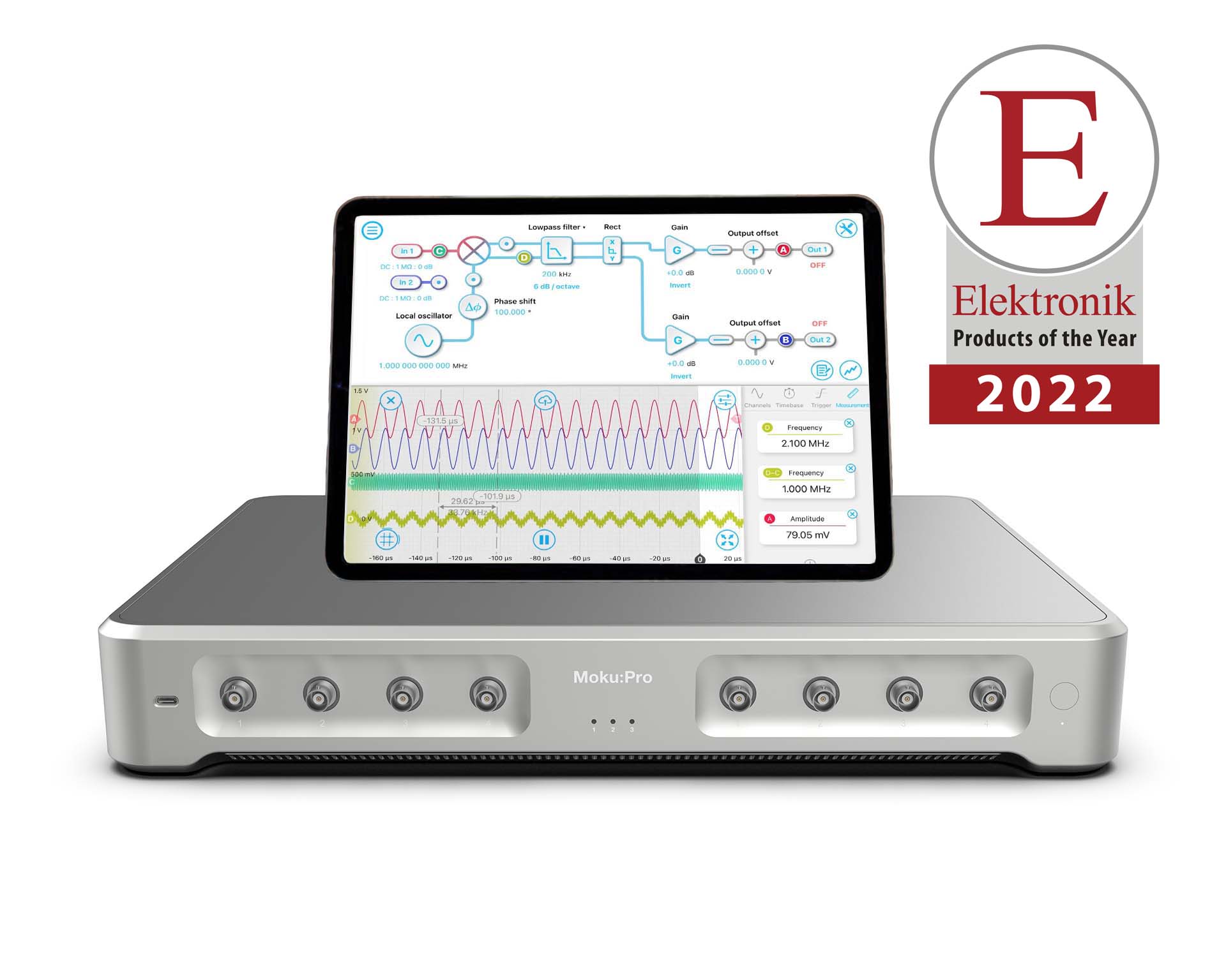Moku:Pro ist ein fortschrittliches System der Moku:Familie softwaredefinierter Messgeräte. Das System nutzt die Leistung des FPGAs in Kombination mit einem analogen Hochleistungs-Front-End und ist dadurch in der Lage, mehrere Messfunktionalitäten auf einer einzigen Hardwareplattform zu hosten, ohne auf einzelne Spezifikationen zu verzichten oder Präzision einzubüßen. Diese Herangehensweise ermöglicht eine einfache Skalierung und Erweiterung der Möglichkeiten in Forschung und Entwicklung. Mit Moku:Pro haben Forscher und Ingenieure das richtige Werkzeug für eine Vielzahl von Aufgaben.