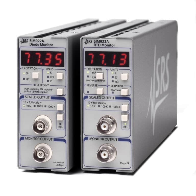 Das SIM922A-Modul verfügt über eine programmierbare, präzise 10-µA-Stromquelle für die Sensoranregung. Die Ergebnisse können entweder in Kelvin oder Volt angezeigt werden.SIM923A