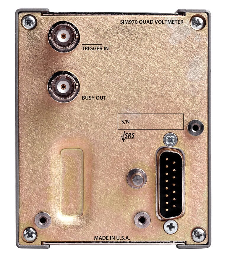 Das helle LED-Display an der Vorderseite zeigt dreimal pro Sekunde aktualisierte Messwerte an. Der Computerzugriff über den SIM900-Mainframe (RS-232 oder GPIB) ermöglicht die Datenprotokollierung mit einer Auflösung von 24 Bit. Alle Kanäle sind vom Boden und voneinander isoliert. Das SIM970 verwendet isolierte BNC-Anschlüsse für Eingänge, sodass Koaxialkabel zur Reduzierung der Rauschaufnahme verwendet werden können.