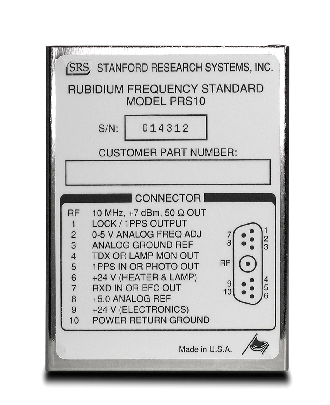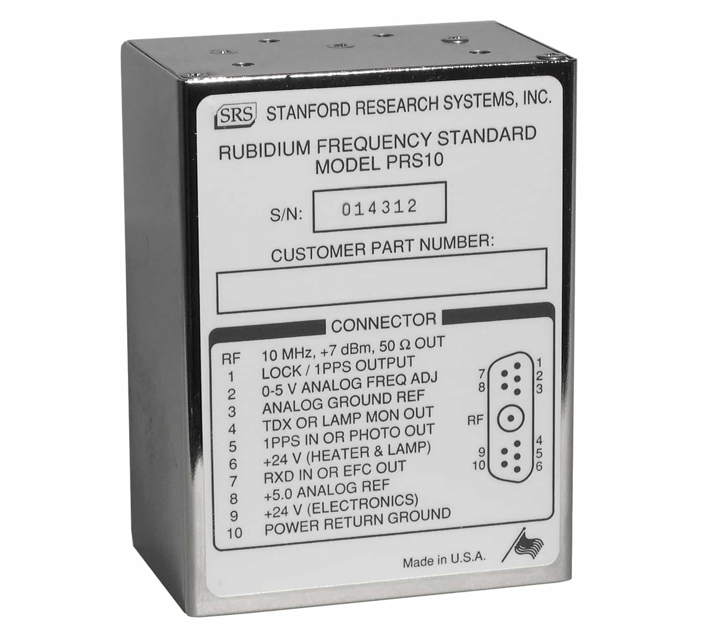 Der PRS10 besitzt exzellente Eigenschaften bzgl. Phasenrauschen, Allan Varianz (Kurzzeitstabilität) und Alterungscharakteristik. Die Verwendung einer Rubidiumresonanzquelle für niedrigstes Phasenrauschen kombiniert mit einem innovativen, elektronischen, zweiofigen, temperaturüberwachten Quarzoszillator zur Minimierung des Temperaturgradienten ermöglichen eine niedrige Allan Variance. Dies macht den Standard ideal für präzise Timing-Anwendungen, Netzwerk-synchronisationen, Telekommunikation und GPS-Navigation, sowie Ultraschall- und Radaranwendungen. Es kann eine kostengünstige Stratum 1 Performance realisiert werden.