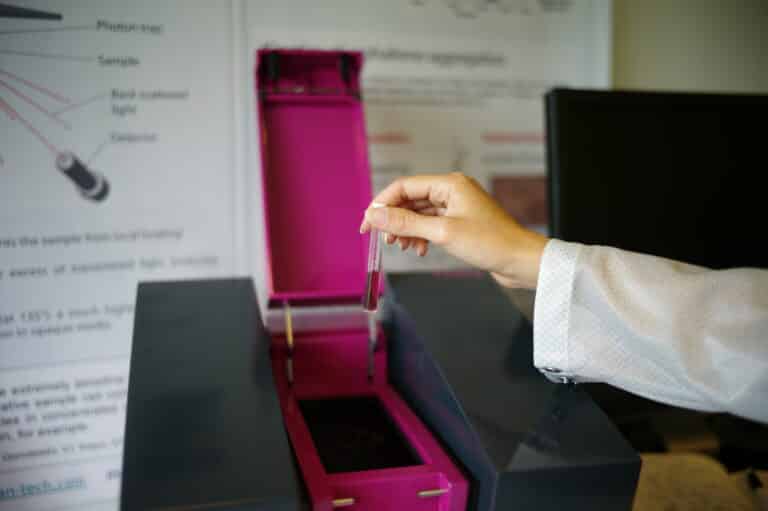 Das Funktionsprinzip basiert auf den neuesten technologischen Weiterentwicklungen in der statischen Lichtstreuung (SLS) sowie der depolarisierten dynamischen Lichtstreuung (DDLS) und bietet eine hohe Auflösung bei gleichzeitig genauer und schneller Messung.
