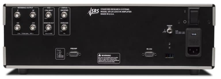 Der SR2124 ist ein rein analoger Zweiphasen-Lock-In Verstärker, der Wechselspannungs- und Wechselstromsignale in stark störbehafteter Umgebung messen kann. Er ist damit insbesondere für Anwendungen in der Tieftemperaturphysik verwendbar. Um hochfrequentes Rauschen von der Probe fernzuhalten, ist der Systemtakt lediglich während einer Systemänderung in Betrieb, sonst ruht er. Die Messwerte werden in digitaler und analoger Form dargestellt. Eine serielle und faseroptische Schnittstelle sind implementiert.