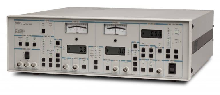 Der SR510 ist ein analoger Lock-In Verstärker, der Wechselspannungs- und Wechselstromsignale in stark störbehafteter Umgebung messen kann. Beide Verstärker besitzen rauscharme Spannungs- und Stromeingänge. Die Geräte liefern hohe Dynamikreserven, variable Zeitkonstanten und enthalten einen internen Oszillator. Zusätzlich sind die Verstärker mit vielen anwendungsspezifischen Eigenschaften ausgerüstet, die die Bedienung sehr vereinfachen. Die Messwerte werden in digitaler und analoger Form dargestellt. Serielle wie parallele Schnittstellen sind implementiert.