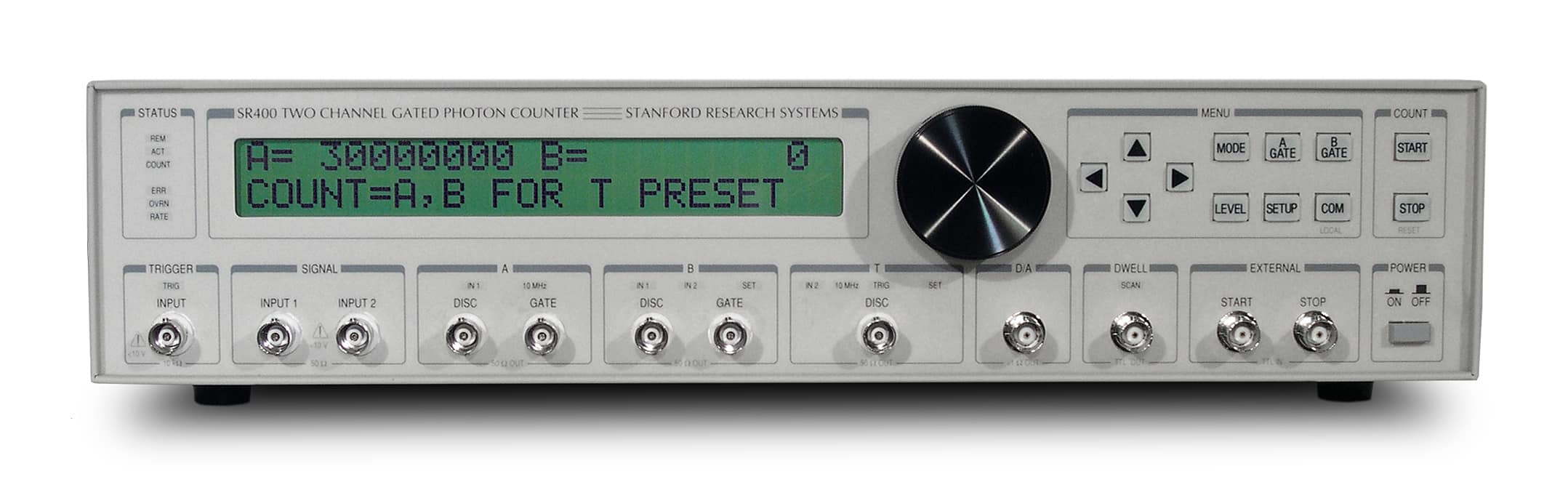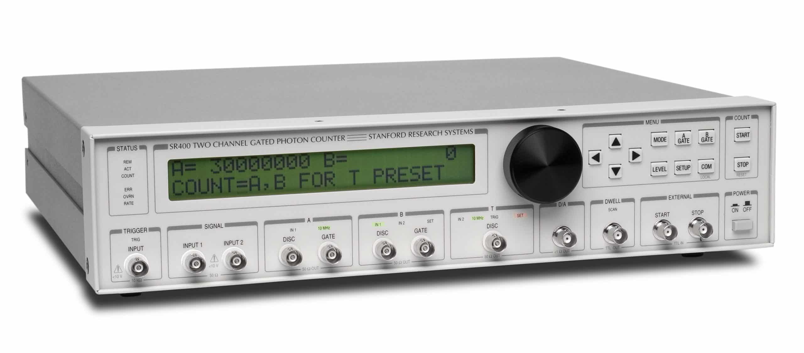 Der SR400 bietet eine Vielzahl von Eigenschaften die in älteren Zählern vermisst werden. Es ist nicht mehr notwendig sich anpassbare Vorverstärker, Diskriminatoren oder gatebare Generatoren zu beschaffen. Der SR400 kombiniert diese Module innerhalb eines einzigen integrierten mikroprozessorgesteuerten Messgeräts. Eine hohe Anzahl von Betriebsarten gewährleistet hohe Variabilität. Die Zähler arbeiten für eine bestimmte einstellbare Zeit, bis eine gesetzte Anzahl von Counts erschienen ist oder eine bestimmte Anzahl von Triggern angelegt wurde.