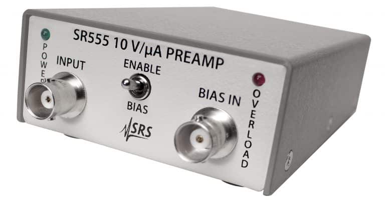 Die Kennzeichen der beiden Modell SR555 und SR556 sind geringes Rauschen, hohe Verstärkung und große Bandbreite. Die Geräte finden ihre Anwendungen im weiten Feld der Analysen-, Sensor- und Detektortechnik. Die nötige Spannungsversorgung liefert der mit den Verstärkern verbundene Lock-In-Verstärker SR5x0, SR8x0 oder SR124.