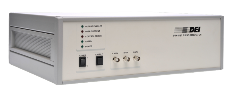 Der PVX-4130 Hochspannungspulsgenerator ist direkt gekoppelt, luftgekühlt und wurde nach dem Solid-State-Halbbrückendesign (Totempfahl) entwickelt, das gleich schnelle Impulsanstiegs- und -abfallzeiten sowie geringe Verlustleistung bei praktisch keinem Überschwingen, Unterschwingen oder Klingeln bietet. Es verfügt über eine Überstromerkennungs- und Abschalteinrichtung, um den Impulsgenerator vor möglichen Schäden durch Lichtbögen und Kurzschlüsse in der Last oder im Verbindungskabel zu schützen.