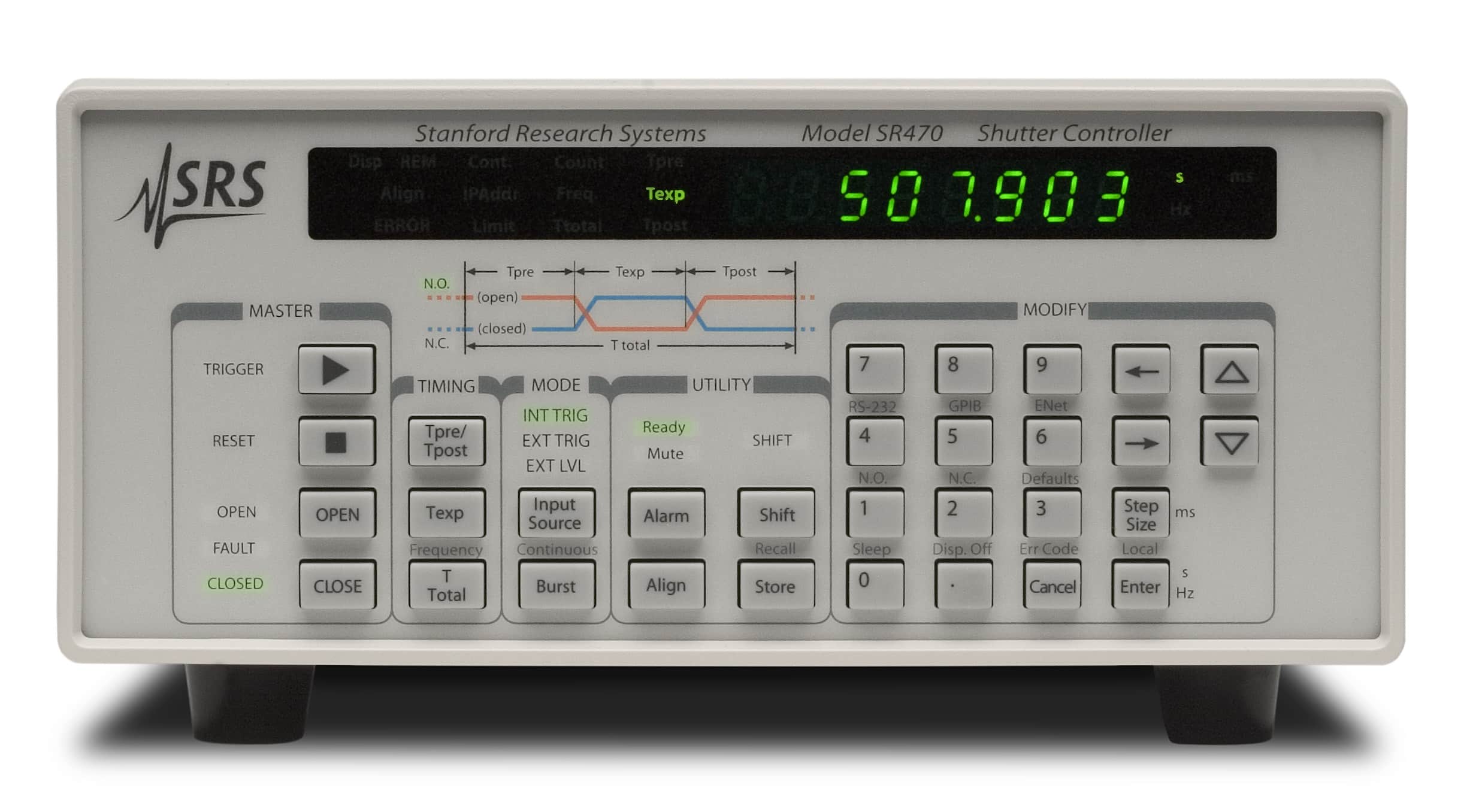 Die optischen Shutter der Modellreihe SR470 wurden zur Reduzierung von Vibrationen auf optischen Tischen entwickelt. Die Anstiegs- und Abfallzeiten liegen bei ungefähr 500 µs. Die maximale Arbeitsfrequenz ist 125 Hz. Die Shutter-Öffnung beträgt 3 mm. Die zugehörigen Shutter-Köpfe SR475 & SR476 sind für Laser mit einer Leistung von <1 W geeignet.Bitte fordern Sie weitere Informationen und Beratung über das Kontaktformular unten an.