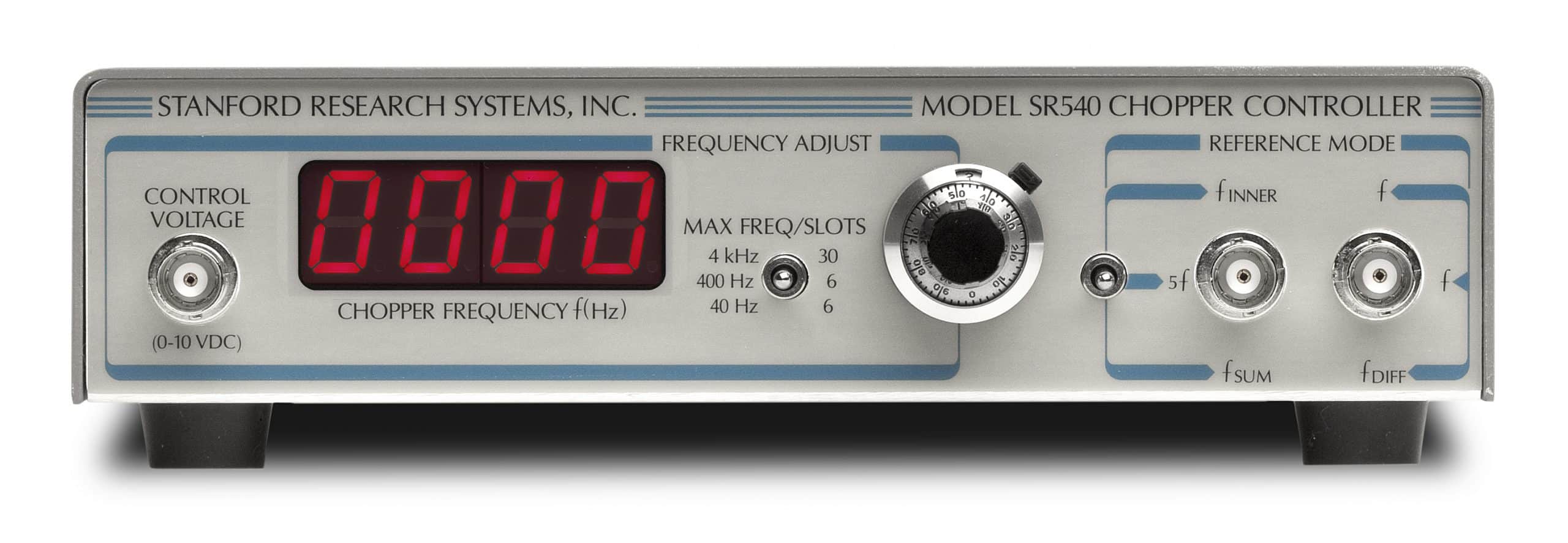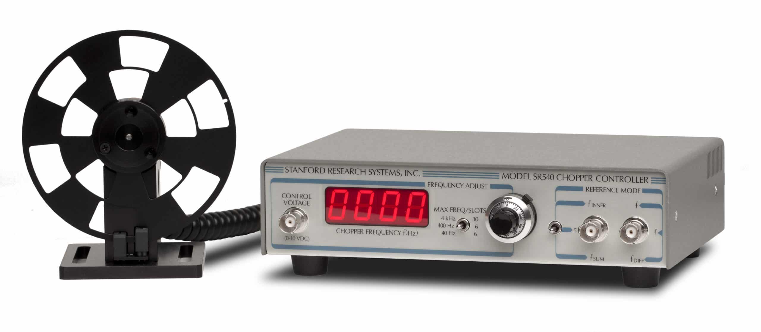 Mit dem Lichtzerhacker SR540 können sie sowohl Ein- als auch Zweistrahlexperimente sowie Intermodulationsmessungen fahren. Über ein Zehngang-Potentiometer wird die Chop-Frequenz eingestellt. Die vierstellige digitale Anzeige zeigt präzise die an den Chopperblättern mittels Lichtschranken gemessene Frequenz an. Über 2 unterschiedliche Chopper-Blätter kann der komplette Frequenzbereich von 4 … 3,7 kHz abgedeckt werden. Jedes Blatt liefert zwei unterschiedliche Schlitzreihen. Am Controller können die Frequenzen der Einzelreihen sowie die Summen- und Differenzfrequenz abgegriffen werden.