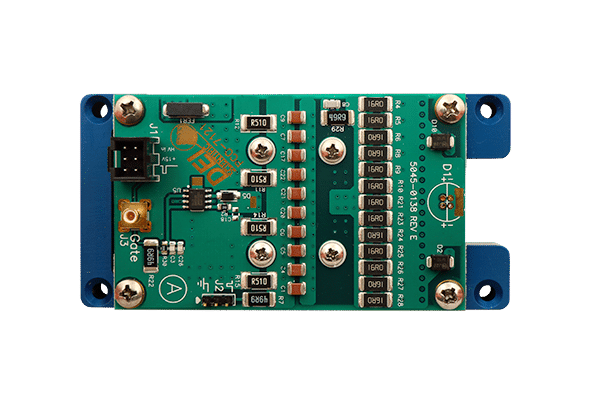 Die DC-Hochspannungs- und +15-V-DC-Stromversorgungen werden über J1, den sechspoligen Stiftleistenanschluss, über das mitgelieferte Steuerkabel angeschlossen. Der Pulsstrom hängt von der HV-Versorgungsspannung im Bereich von 0 V bis +95 V (maximal) ab. Extern erzeugte Impulse werden dem Gate-Eingang entweder über J1 oder den SMB-Anschluss zugeführt. Breite und Wiederholrate der Gate-Impulse legen direkt das Timing der Ausgangsimpulse fest. Ein Strommonitoringausgang ist vorhanden, um den Diodenstrom in Echtzeit z. B. mit einem Oszilloskop zu beobachten.