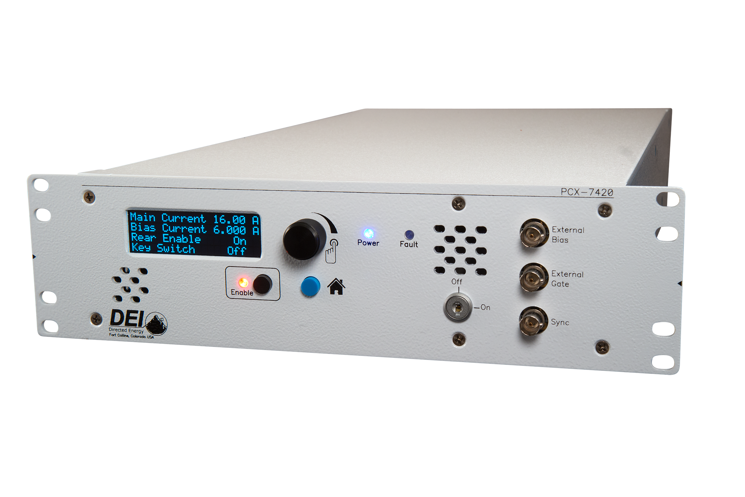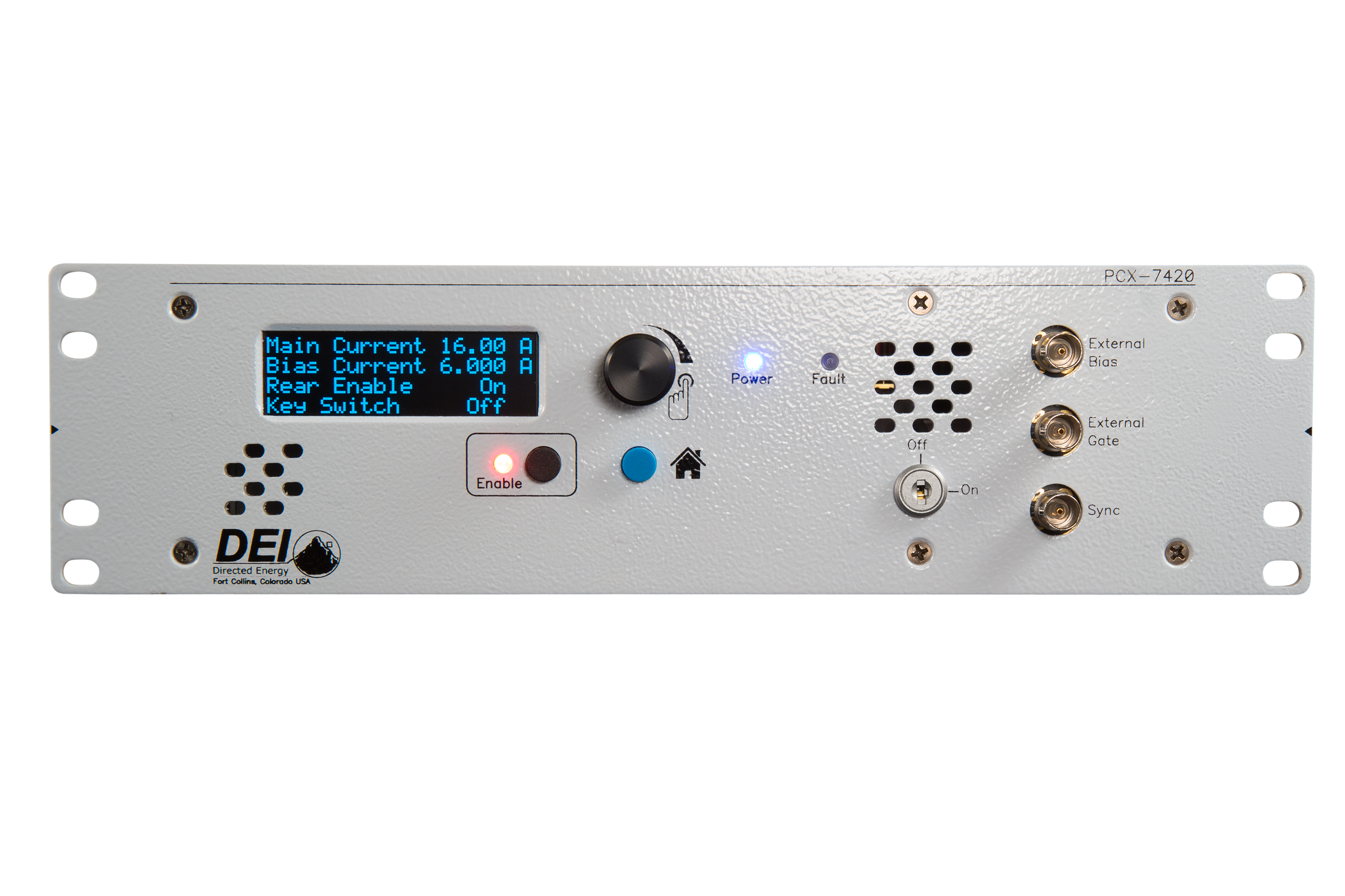 Der PCX-7420-B Strompulsgenerator bietet die Möglichkeit, sowohl QCW- (gepulste) als auch CW- (DC) Ausgangsströme bereitzustellen. Er kann als CW-Treiber bei Strömen von 50 mA bis 5,8 A und als gepulster/QCW-Treiber bei Strömen von 50 mA bis 21,5 A dienen. Darüber hinaus kann der Ausgang auf jeden CW-Strom zwischen 3 A und 5,8 A (Bias) voreingestellt werden, um anschließend oberhalb dieses Bias-Stroms Pulse mit bis zu maximal 15,7 A auszugeben. Zudem ermöglicht eine neue Funktion ermöglicht, den Bias-Strom unabhängig vom Hauptstrom-Trigger zu pulsen und auszulösen.