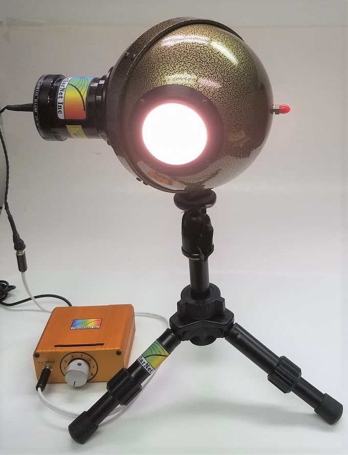 StellarNet’s Einheitslichtkugel-Serie mit Zubehör bietet homogene Lichtquellen nach dem US-amerikanischen „NIST traceable“-Standard über einen abstufbaren, optischen Ausgangsleistungsbereich. Diese Systeme eignen sich hervorragend für die Kalibrierung von Sensoren oder anderen bildgebenden Systemen. Das UIS-LS-System besteht einer integrierenden 6″/15,24 cm großen Kugel mit reflektierender Stellarflect®-Beschichtung. Somit wird eine mindestens 99 %-ige spektrale Ausleuchtungshomogenität an der 2″/5,08 cm-Ausgangsöffnung erreicht. Um allen Anforderungen gerecht zu werde, stehen 10, 30, 50 oder 75 W-Lampen zur Auswahl.