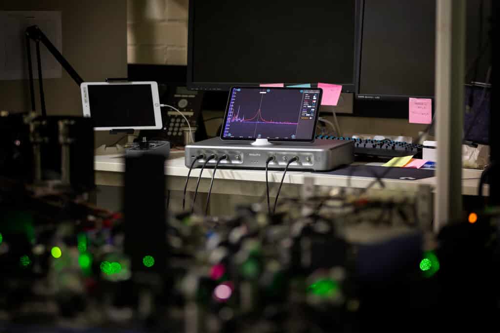 Moku:Pro beherbergt neun leistungsstarke Messgeräte, darunter ein Oszilloskop, Lock-In-Verstärker, PID-Regler, Phasenmesser, Arbiträrgenerator, Datenlogger, Spektrumanalysator, Frequenzganganalysator und Funktionsgenerator, um sicherzustellen, dass Forscher über die Messfunktionalitäten verfügen, die sie für einen schnellen Aufbau und das Skalieren ihre Experimente benötigen. Die Plattform wurde entwickelt, um die Bedürfnisse von Forschern in einer Vielzahl von Bereichen zu erfüllen, von der Luft- und Raumfahrt bis hin zu Halbleitern. Die Funktionalitäten-Suite von Moku:Pro eignet sich hervorragend für Photonikanwendungen, einschließlich Spektroskopie, Mikroskopie, Messtechnik, Gravitationswellendetektion, aktive Laserstabilisierung und Quantencomputing.